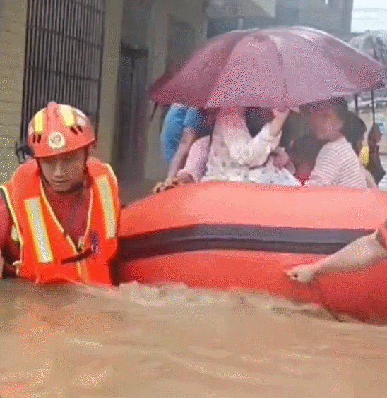 受连日强降雨影响,湖南郴州汝城县多地出现洪水灾害,水位上涨,房屋被淹,有群众被困。消防救援人员在洪水中小心翼翼转移年迈老人,幼小孩童,驾驶救援舟艇共转移群众64人。